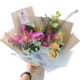 –1 stalk Sunflower, 2 Roses, Medium size bouquet, approximately +/- 28cm